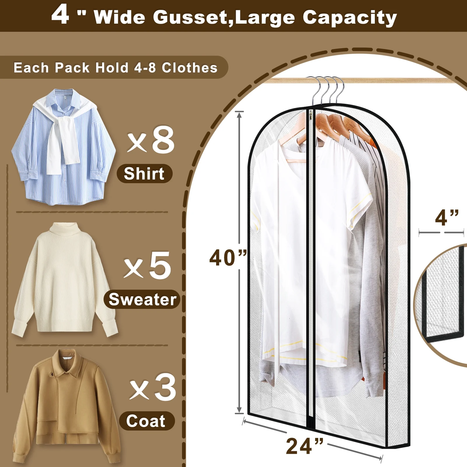 Aovky 40โ€ Garment Bag, Clear Garment Bags for Hanging Clothes with 4″ Gusseted, Suit Bags for Closet Storage and Travel for Coat, Jacket, Sweater, Shirts, 4 Packs