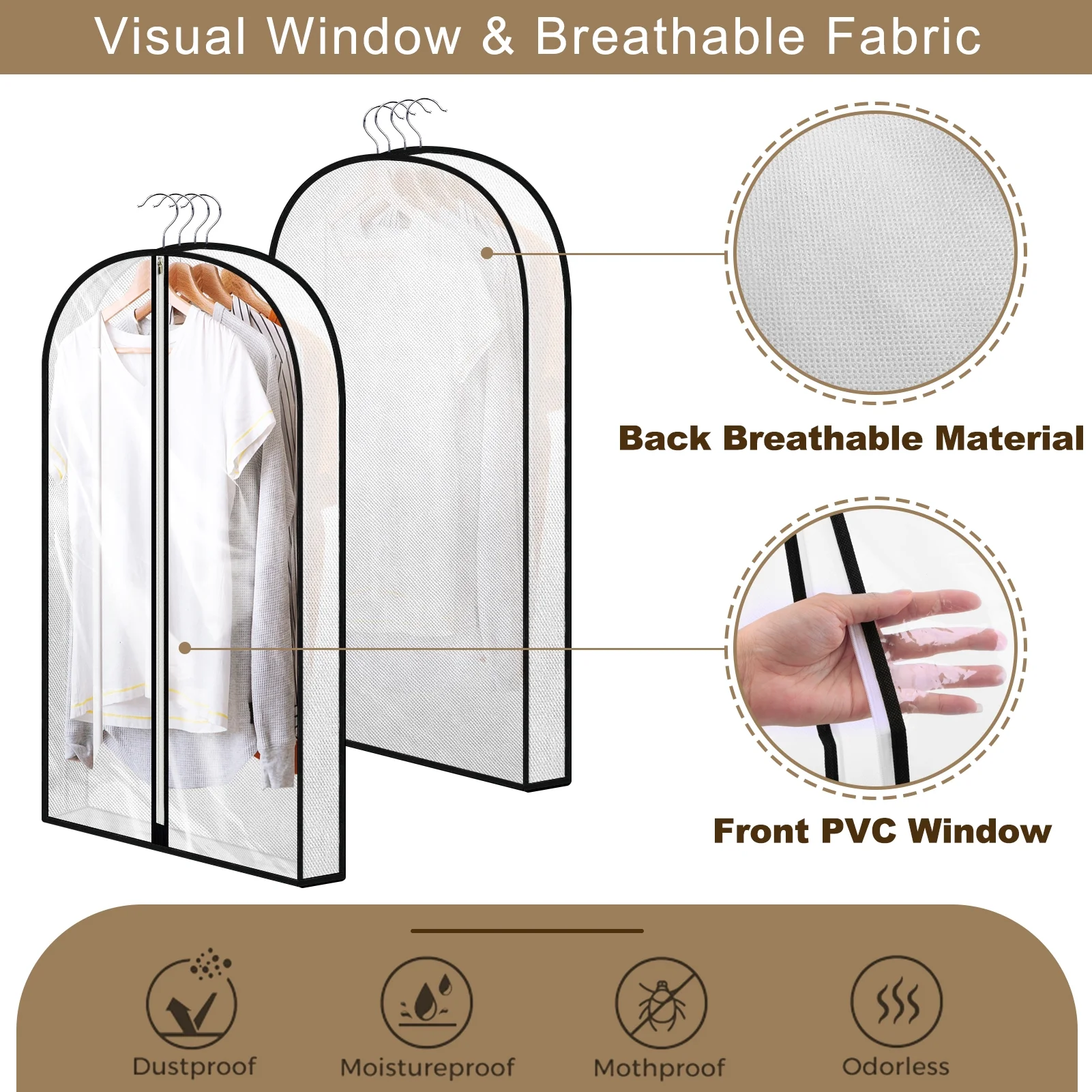 • Clear Visibility: Transparent PVC front allows easy viewing of contents without opening the bag, while the breathable non-woven fabric protects clothes from dust and odors.