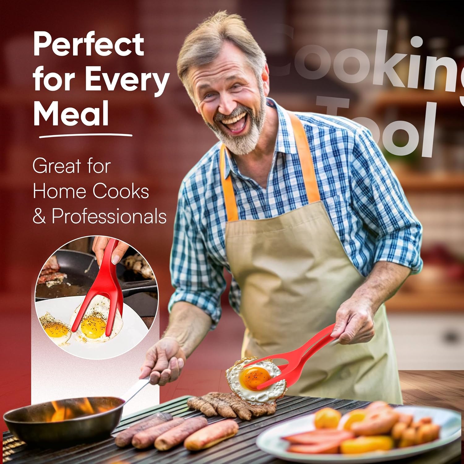 - 🍳Versatile 2-in-1 Design: Revolutionize your cooking experience with ease as you effortlessly egg flipper Spatula Tong and securely grip your foods. This innovative culinary tool is expertly designed to handle a variety of kitchen tasks with precision and versatility.