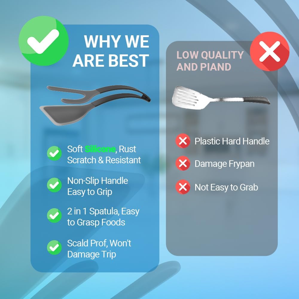 - 🍳Versatile 2-in-1 Design: Revolutionize your cooking experience with ease as you effortlessly egg flipper Spatula Tong and securely grip your foods. This innovative culinary tool is expertly designed to handle a variety of kitchen tasks with precision and versatility.