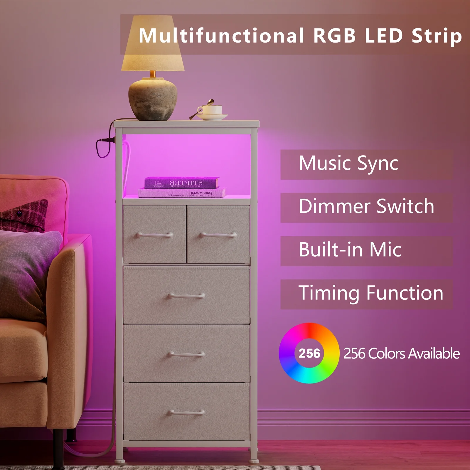 • Ample Storage: Offers 5 fabric drawers and a top wooden shelf for organizing personal items and displaying decor.